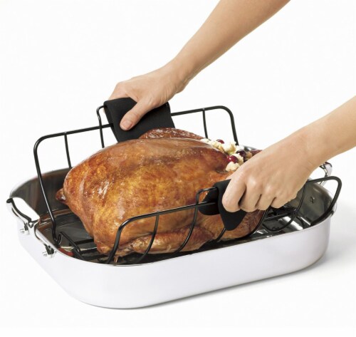 - Fits a 16" x 13" roasting pan; can hold up to a 25lb/11kg bird or roast